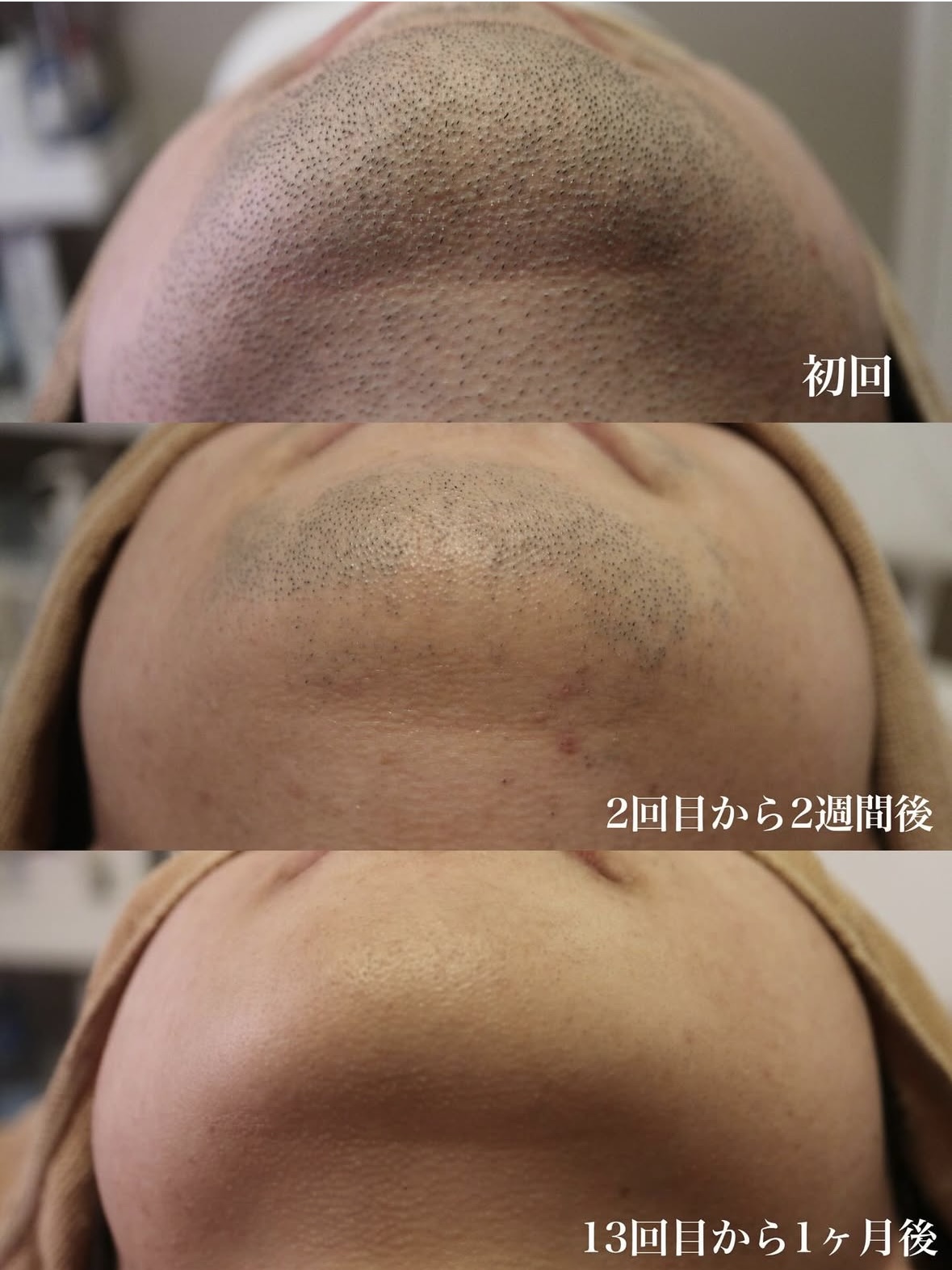 初回と2回目から2週間後、13回目から1か月後の写真です。痛みが心配な方も優しいレベルからスタートできます。