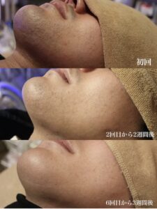 初回と2週間後、6回目から3週間後の写真です。オーダーメイド脱毛でヒゲなし生活!