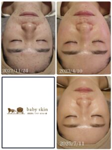スキンケア見直し、食生活の改善、FCRトリートメントやピーリングなど行いました。化粧をしなくても綺麗な肌に生まれ変わりました!