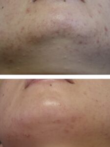 FCRトリートメント9回とフォトフェイシャル、幹細胞導入8回行いました。目立っていたニキビ跡やぽつぽつ細かいニキビも落ち着きました!