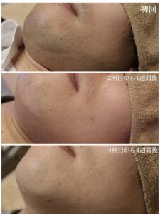 初回と2回目から4週間後、4回目から4週間後の写真です。カミソリ負けしやすい方におすすめです。