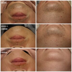 初回と2週間後、12回目から4週間後の写真です。つるんとした若々しい印象になりました!