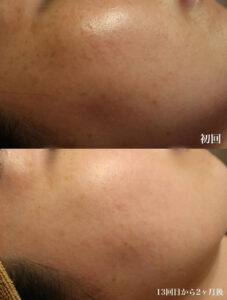 光フォトフェイシャルと顔脱毛、オプションでイオン導入を行いました。頬に全体的にあったシミが薄くなり、キメ細かいお肌に♪