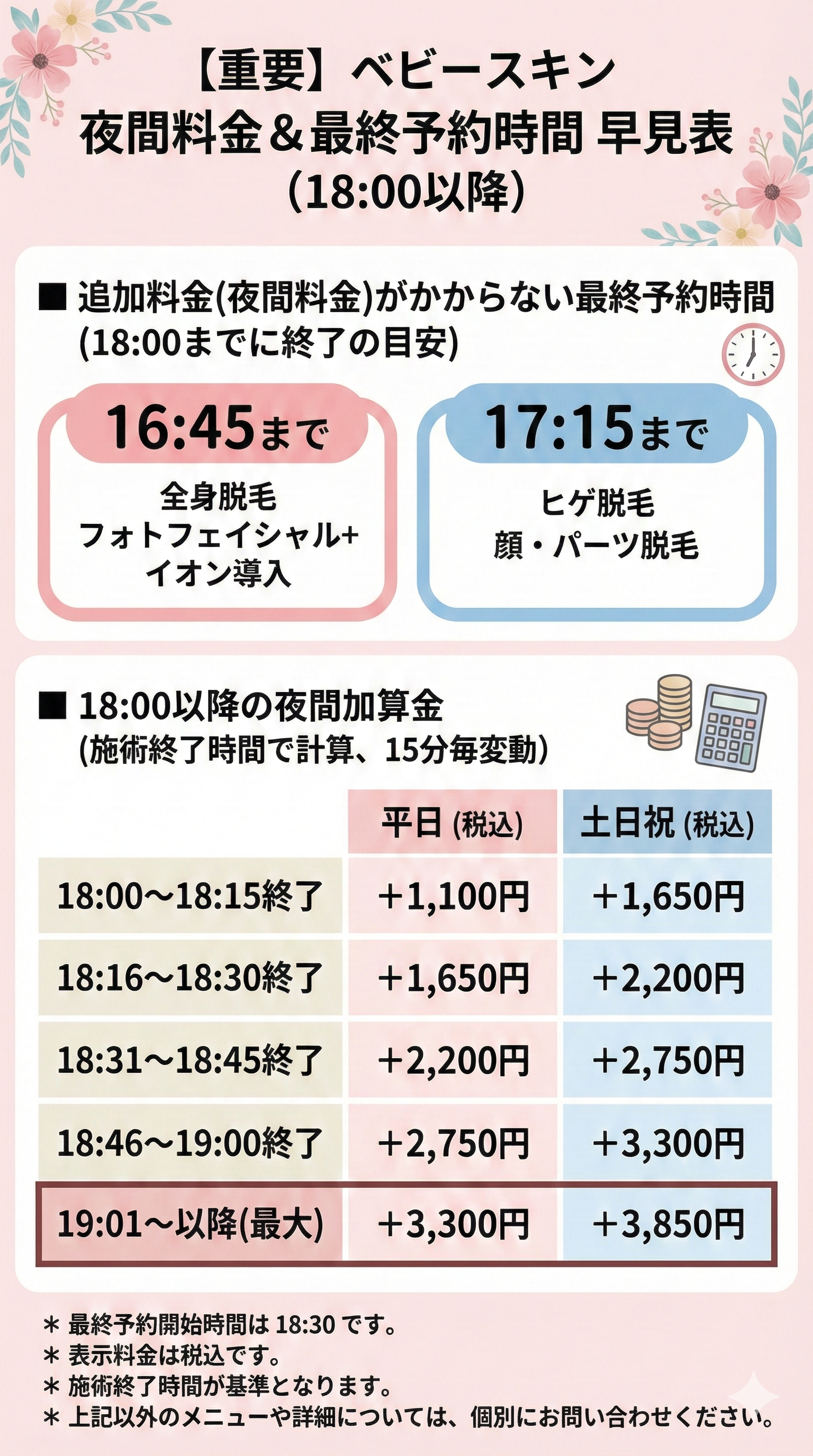 【夜間料金改定のお知らせ】