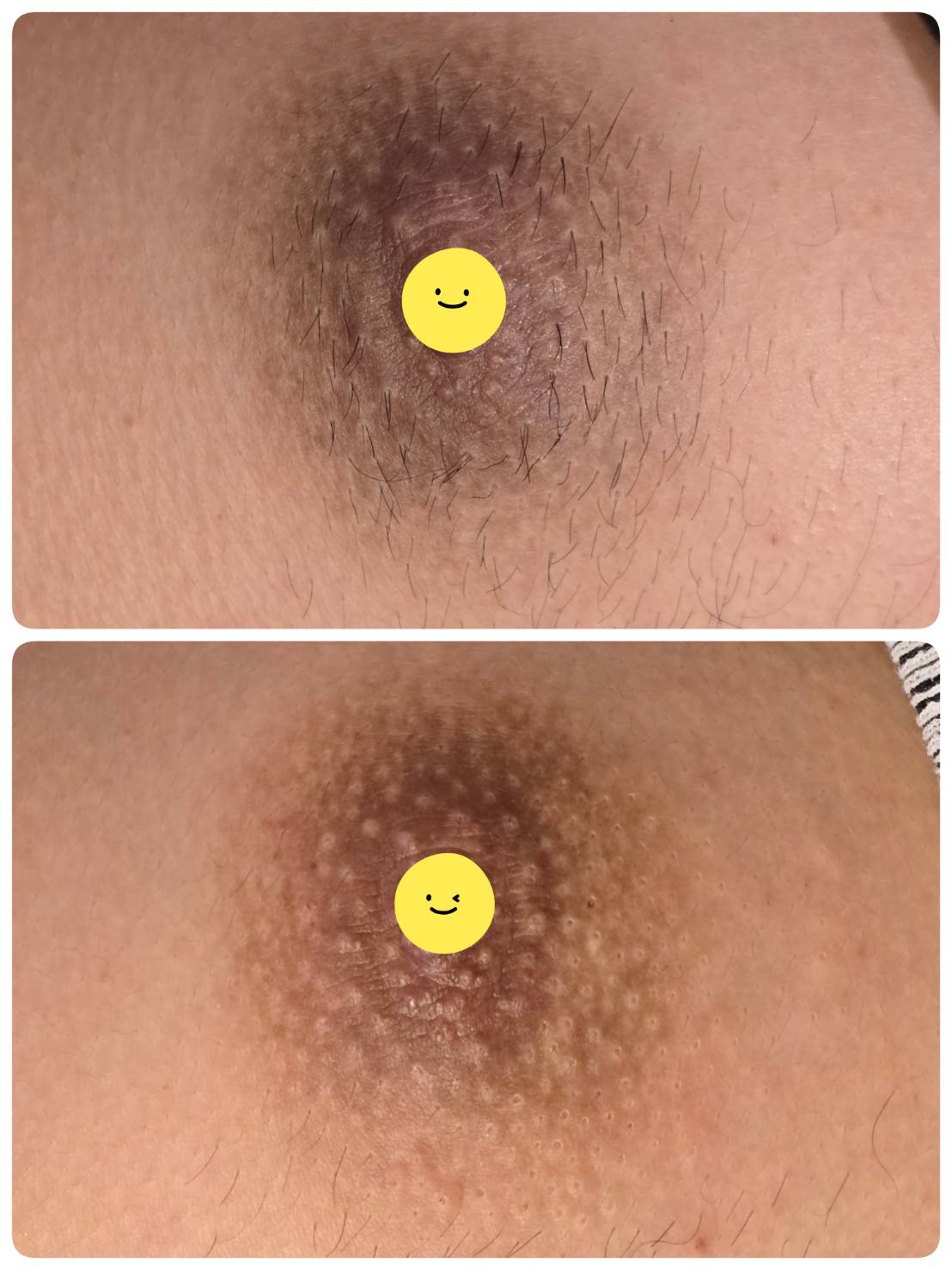 メラニン色素に反応する光脱毛やレーザー医療脱毛では、色素沈着部分の脱毛が難しくなります。 美容電気脱毛なら色素の濃い部分や色黒さん、タトゥーやアートメイクの上からも脱毛可能。