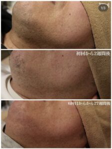 初回と2週間後、6回目から27週間後の頬の写真です。濃い毛が無くなりました。