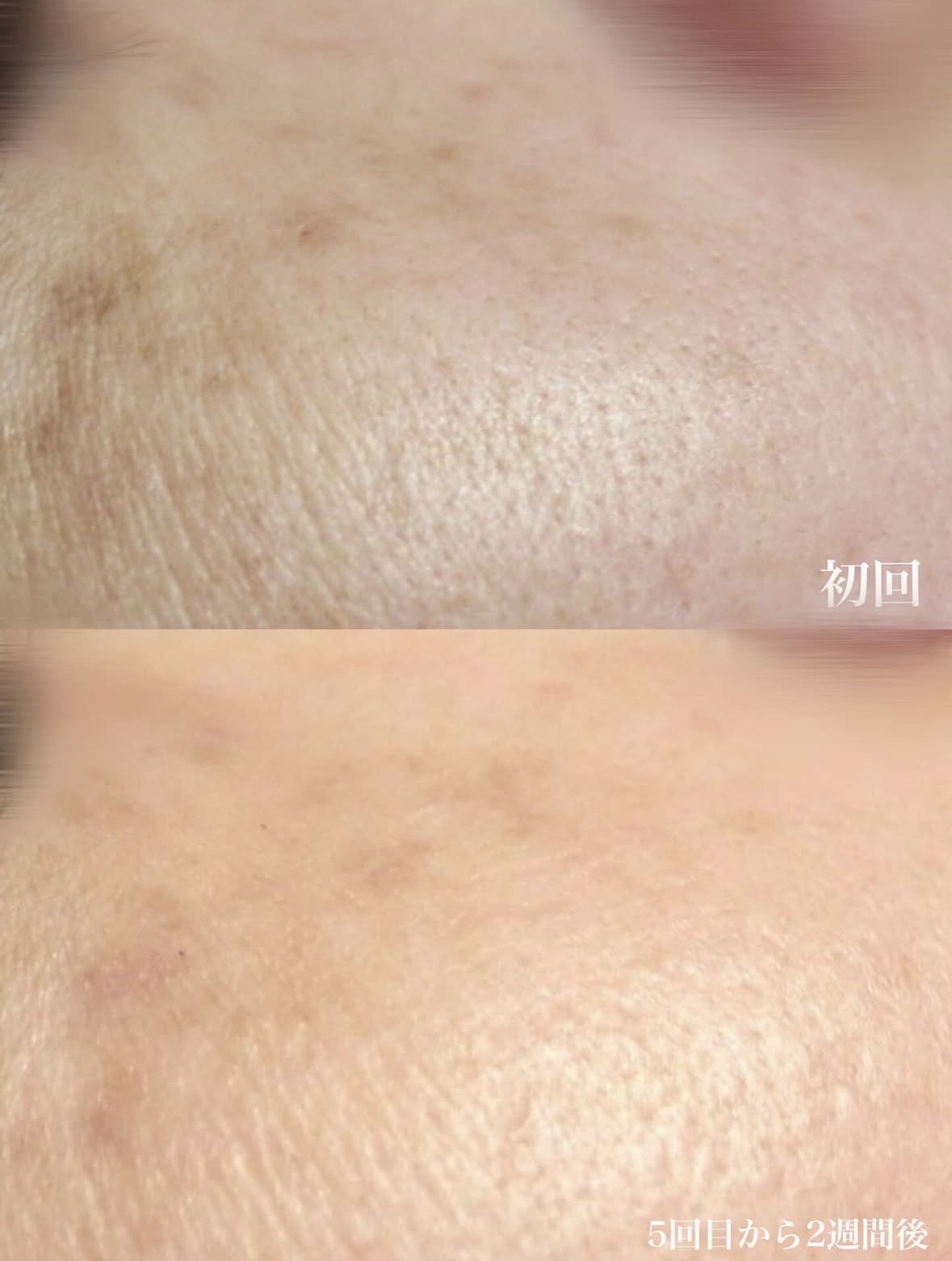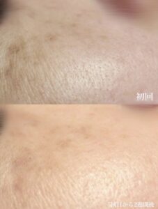 光フォトフェイシャルと、オプションでEMSポレーション(リフトアップに効果的)、脱毛を行いました。目元のシミも薄くなり、若々しい印象に♪