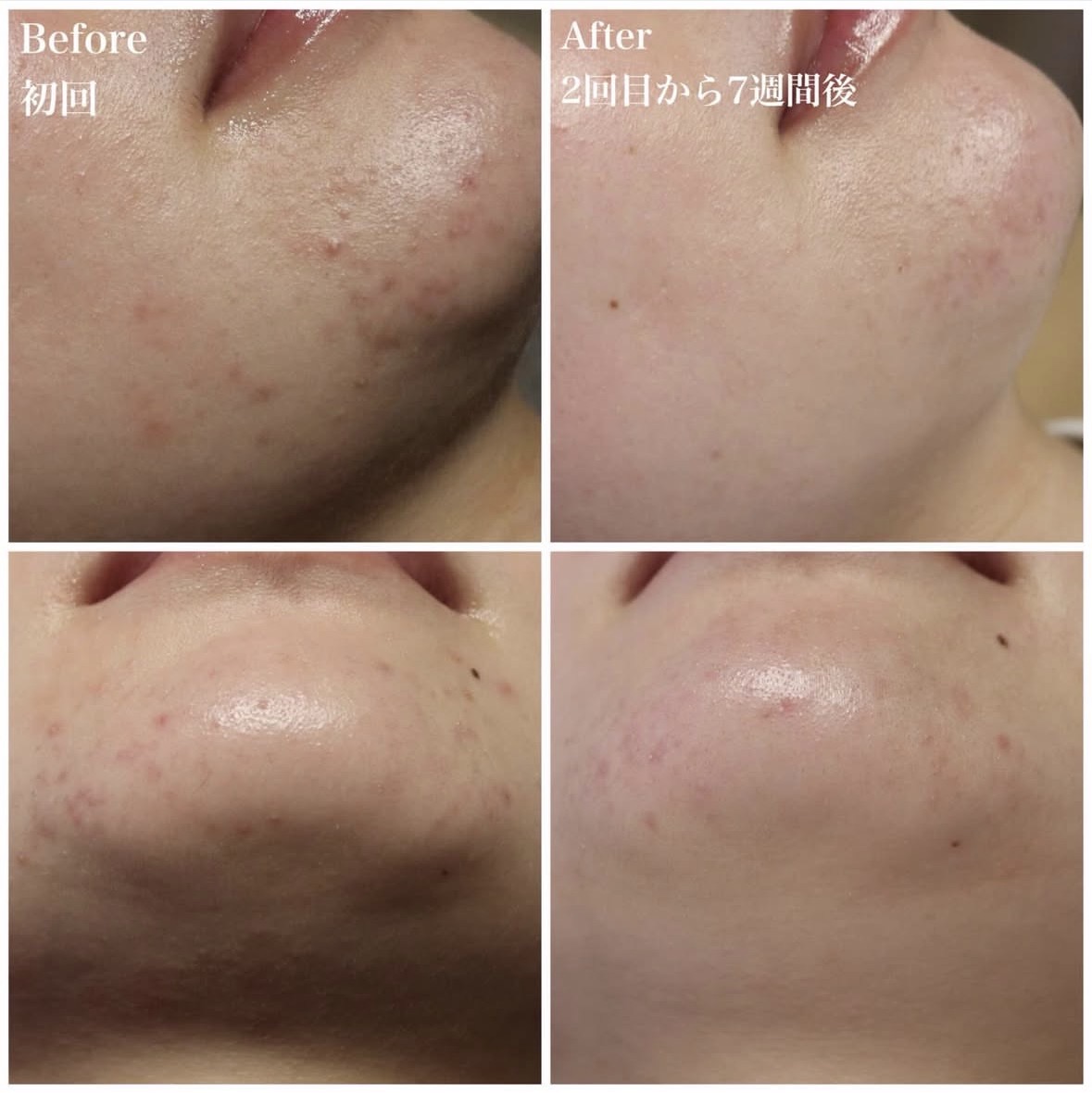 肌診断と食リスク分析、3回のFCRトリートメントと1回の顔脱毛を行いました。だんだんとニキビができにくいお肌になりました!