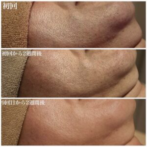 初回、初回から2週間後、9回目から2週間後の写真です。1人1人に合わせたレベル調整で毛の抜けを実感!